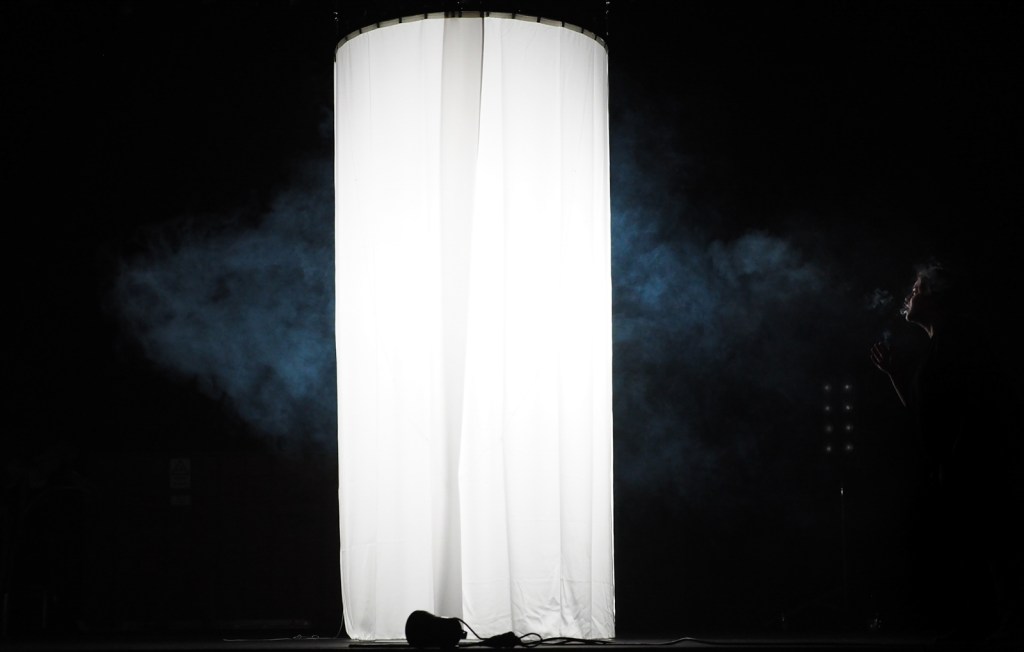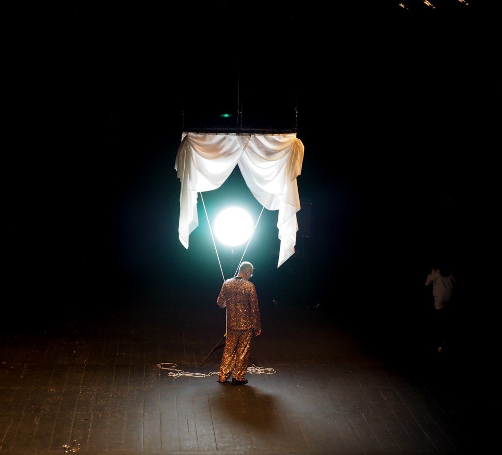 As if theatre was an olive with a seed and the piece is an olive with a seed, and the seed is what we take home, an idea that often makes MATRIZ angry because in MATRIZ there’s no seed. It is also for this reason that Daniel Worm D’Assumpção, that designed the light, decides to step in and embody Nothing. And here he comes with luminous splendor to declare the inexistence of interiority, giving us the pleasure of accessing the aesthetics of inexistence.
