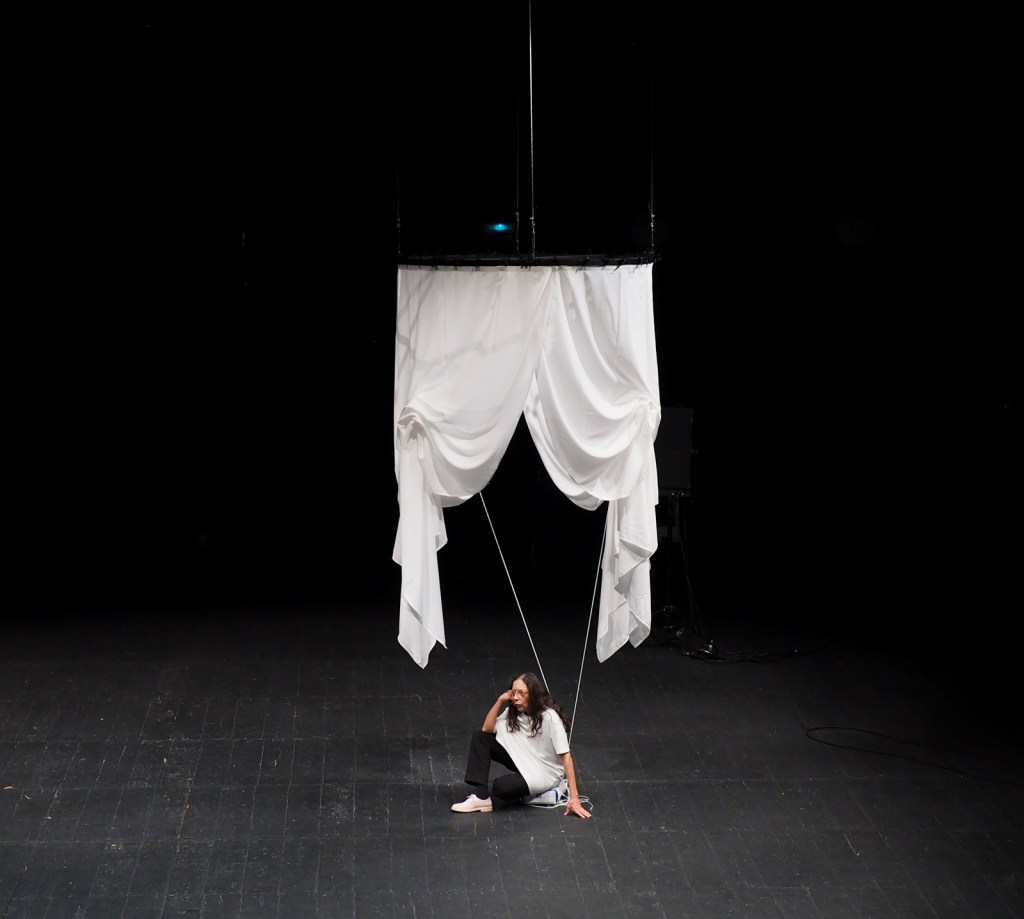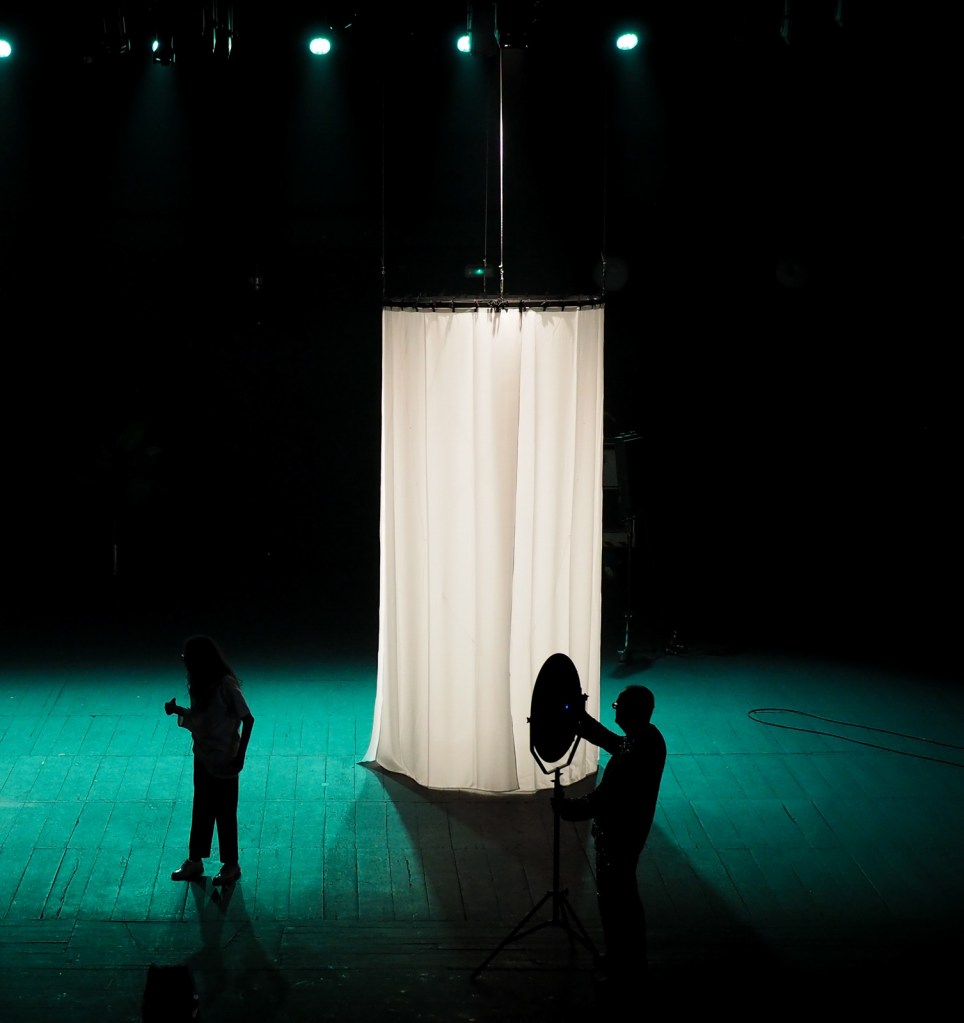 So that everything is present without being a presence, the artist Vasco Araújo knitted two useless curtains that replicate all the curtains and cloths and draperies and fabrics with which theatres are usually dressed as if they were cold or should be something or hide something, as if theatre was obliged to be the place of magic and illusion and secret, as it goes.